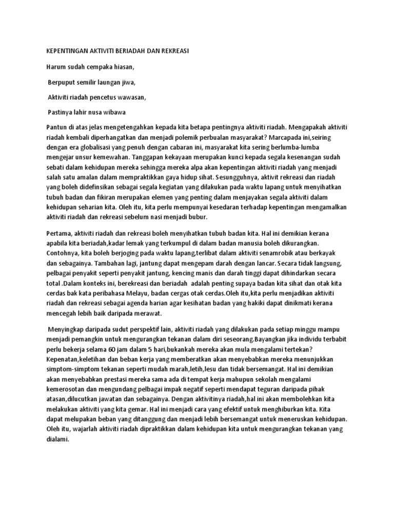 Karangan Kepentingan Aktiviti Riadah Pdf